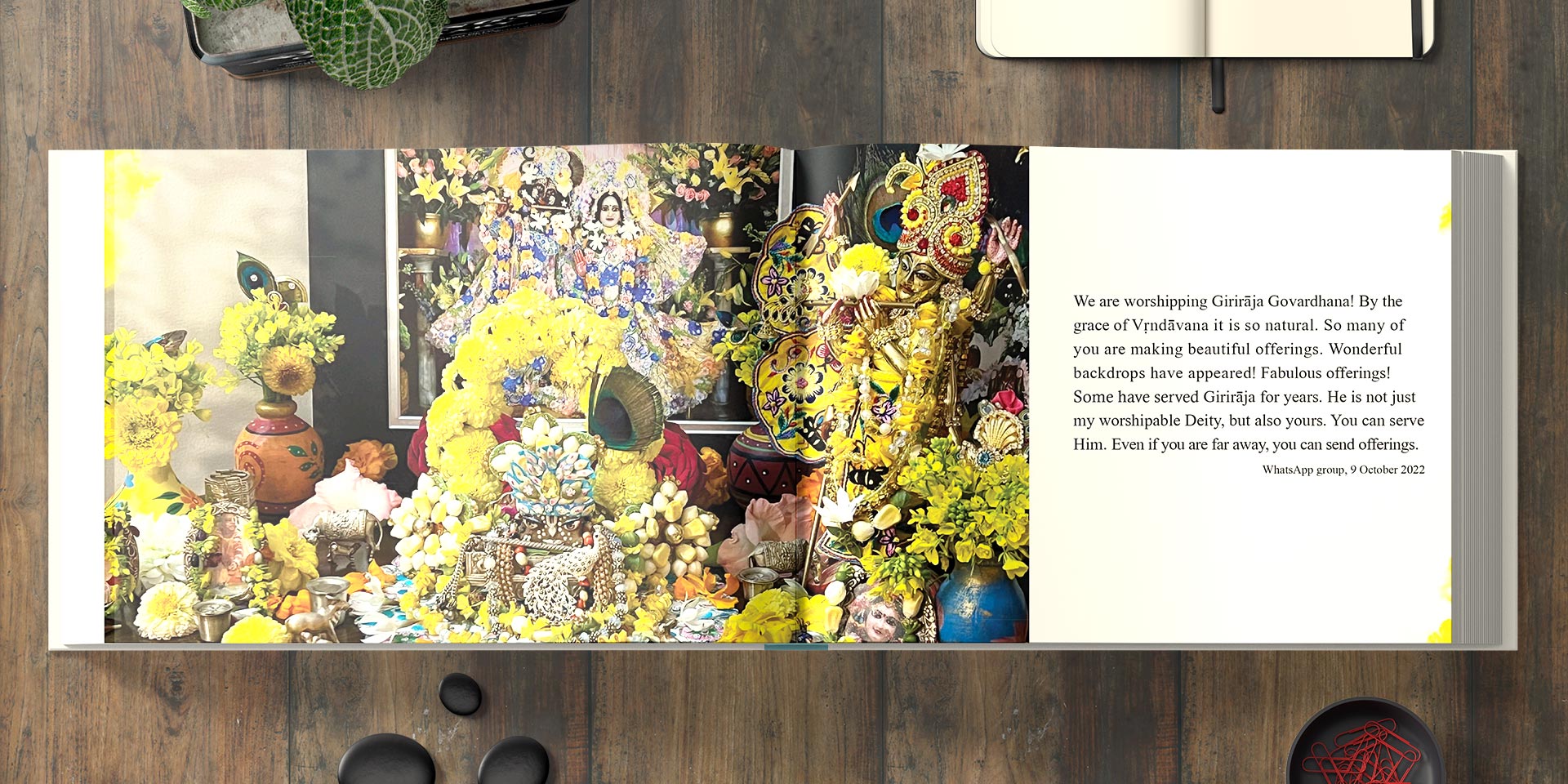 140 pages with full color photos of Girirāja and His gorgeous worship by Kadamba Kanana Swami, accompanied by meditations by Maharaja. All photos were taken by Kadamba Kanana Swami himself.