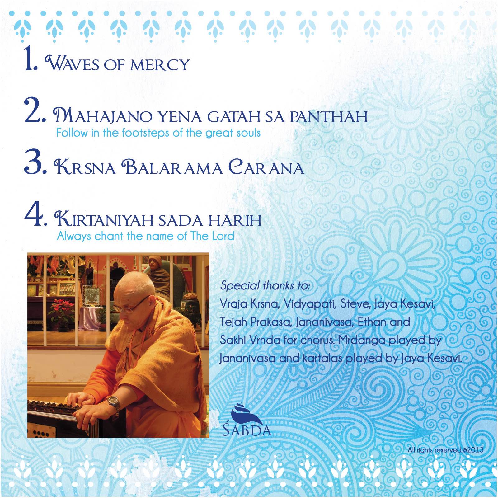 Chorus: Vraja Krsna das, Vidyapati, Steve, Jaya Kesavi, Tejah Prakasa, Jananivasa, Ethan and Sakhi Vrnda.